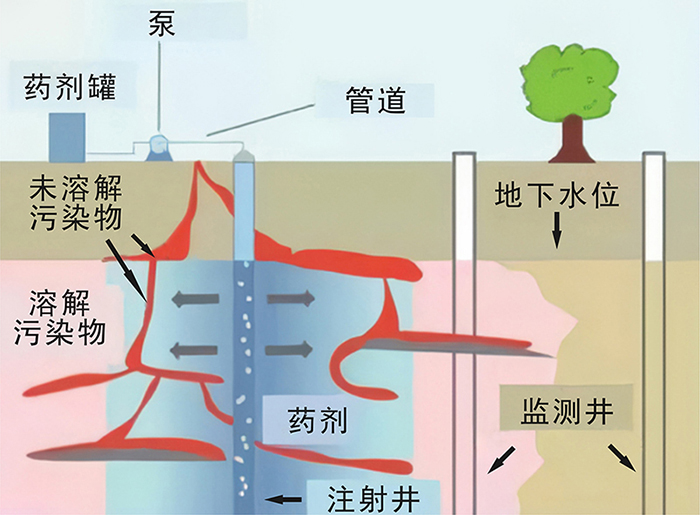 原位化學(xué)氧化/還原技術(shù)是通過(guò)向污染區(qū)域的土壤注入氧化劑或還原劑,通過(guò)氧化或還原作用,使土層中的污染物轉(zhuǎn)化為無(wú)